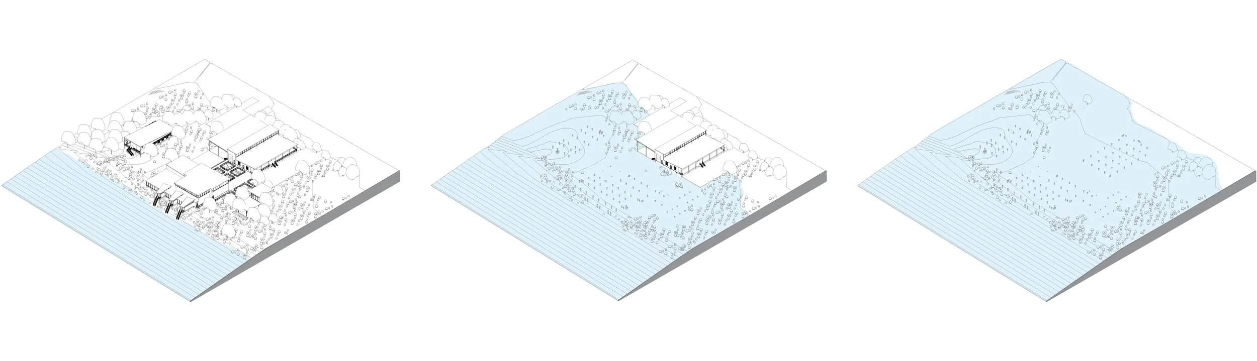 The project begins by harvesting invasive Phragmites reeds directly from the site, a process that not only helps restore the local marsh ecosystem but also repurposes an abundant natural material for construction. Once collected, the reeds are bundled and tightly woven into thatch panels, taking advantage of their inherent properties — including natural ventilation, water resistance, and thermal performance — to support passive heating and cooling strategies. At the end of the building’s lifecycle, the reeds can be responsibly deconstructed and burned, with the resulting ash returned to the soil. This final step aids in carbon sequestration and reinforces the marsh’s natural regenerative cycle, closing the loop between built form and ecological restoration